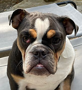 I saw a post on the Plano Animal Services site that showed this old, blind and half starved English Bulldog that had been surrendered by a homeless man. I knew that by his condition, he would not be getting adopted any time soon. So I went to get him and he has become the token "Grandpa" of the herd due to his blindness, lack of hearing anything lower than 100 decibels and running into a lot of walls.